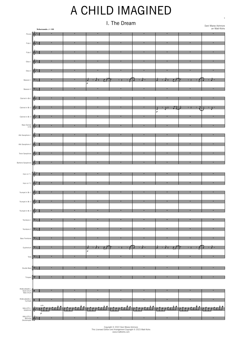 "A Child Imagined" aims to capture a world seen through the eyes of a child. The piece begins with a simple melodic motif featured on xylophone which is then repeated and transformed in various ways throughout its three contrasting movements. The writing features interweaving rhythms, soaring melodies and is full of fun and vibrant imagination. This charming piece has a child-like innocence and playfulness which I hope will capture your heart and take you on your own journey back to childhood.