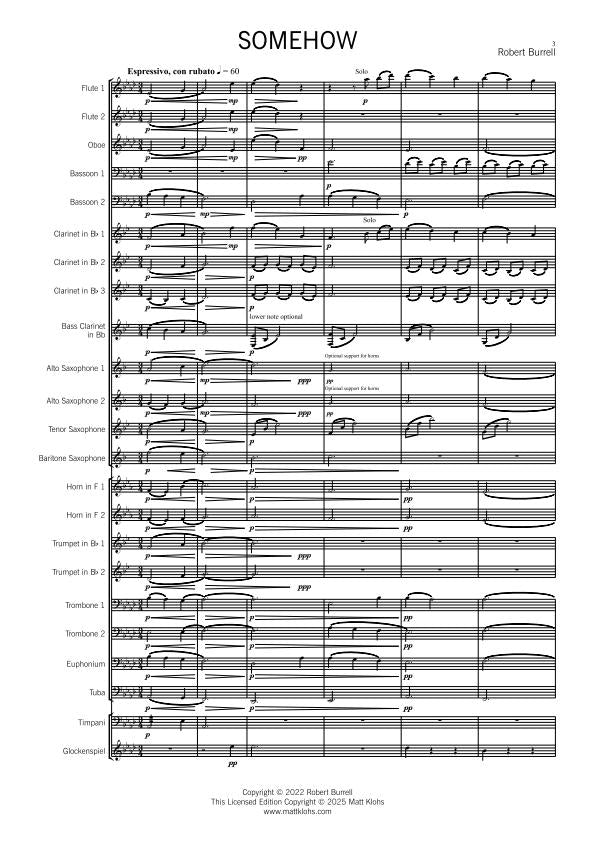 'Somehow' was originally written as an educational round to teach prepared suspensions and their resolutions. The original lyrics 'Somehow I, in all my fear have lost my first love, the first so dear. Oh I never ever thought that I would ever be so alone' influence the orchestration and this is particularly evident in the solo flute ending, painting the words 'so alone'.