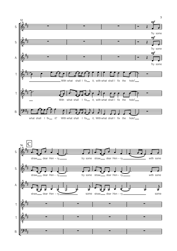 A challenging, but highly rewarding work for skilled choirs, this innovative take on the German folk song will enthrall your singers and truly showcase their ensemble skills.